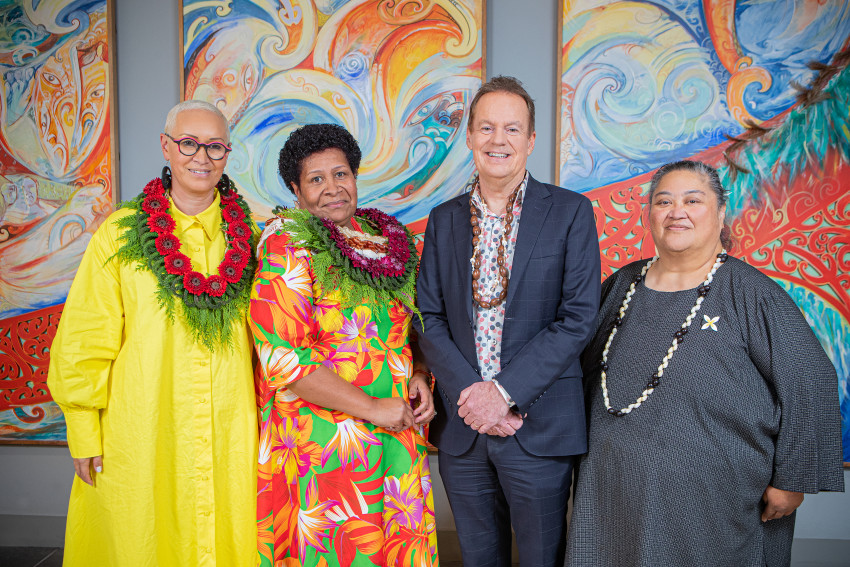 Left to right: Geraldine Clifford - Lidstone, Secretary for Pacific Peoples & Chief Executive, Ministry for Pacific Peoples, Vasemaca Tui Naborisi - Graduand Speaker, Mark Oldershaw - Manahautu Executive Director, Whitireia and WelTec | Te Pūkenga, Jean Mitaera - Chief Advisor, Pacific Strategy Team.